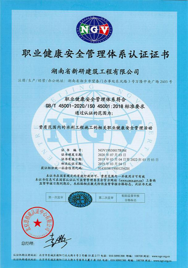 職業(yè)健康安全管理體系認證證書